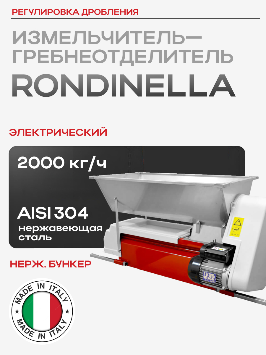 Электрический измельчитель-гребнеотделитель Rondinella бункер из нерж. стали